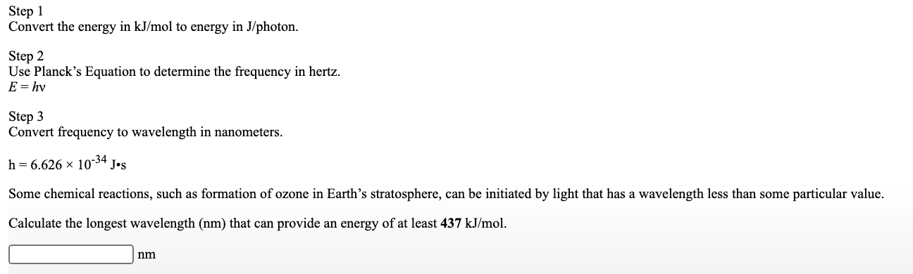 Solved Step 1 Convert The Energy In Kj Mol To Energy In Chegg Com